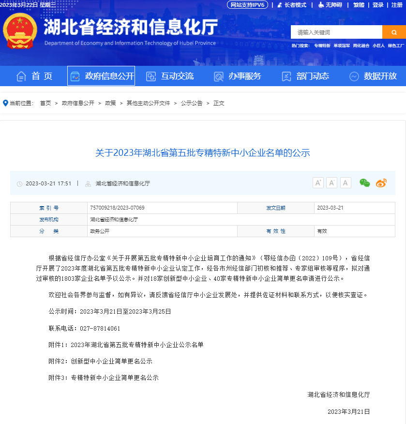 重大喜訊!3月21日,在湖北省經濟和信息化廳公示的《湖北省第五批專精特新中小企業名單》中,敢為科技榜上有名。本次入選是政府與行業主管部門對敢為科技的科技創新、成果轉化、行業專業水平等綜合實力的充分認可!
