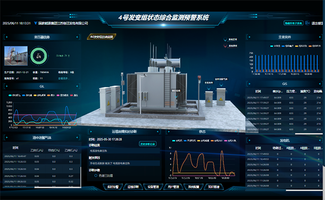 系統(tǒng)主界面以數(shù)字化軟件平臺界面展示變壓器設(shè)備狀態(tài),實時刷新關(guān)鍵參數(shù)(如油中氣體濃度、鐵芯電流值、局部放電、溫度熱力圖等),并支持歷史曲線對比。系統(tǒng)內(nèi)置專家知識庫,結(jié)合大數(shù)據(jù)分析和機器學(xué)習(xí)算法,實現(xiàn)了對變壓器運行狀態(tài)的精準(zhǔn)監(jiān)測和故障預(yù)測,能夠有效提升了系統(tǒng)的安全性和穩(wěn)定性。
